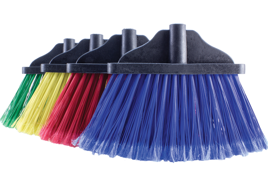 Escoba Tipo Abanico fabricada en base de plástico y fibra de poliéster con puntas “cardadas” para obtener mejores resultados de barrido.